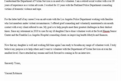 Looking for a sample of an application letter for volunteer work? Discover a well-crafted and concise template...